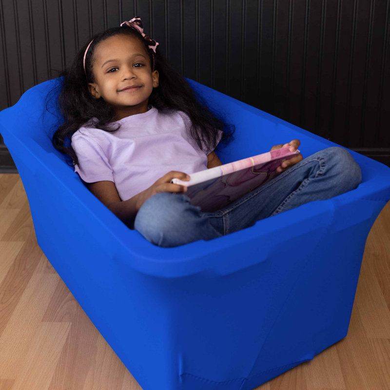 Snuggle Bin™ SleeveIntroducing our portable sensory seat for calm, focus, and rest. The Snuggle Bin™ Sleeve turns an ordinary storage bin* into a calming retreat that supports emotional regulation, clear boundaries, and relaxation for children. Designed for classroom, community settings, clinics, and home use, it encourages self-soothing, quiet time, and gentle body awareness — a favorite among students, teachers, and parents alike.  Proudly made in USA